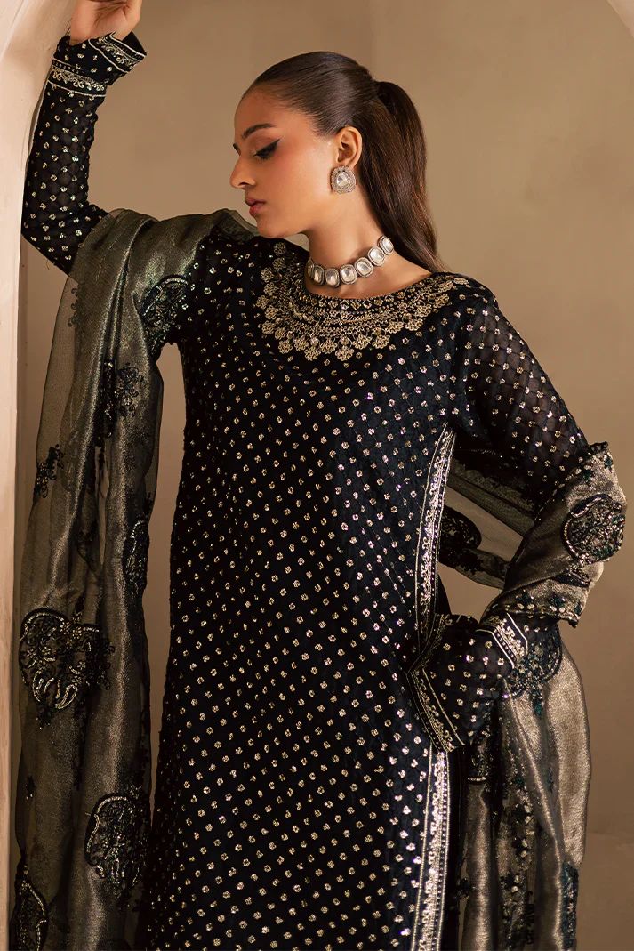 Extra fabrics, laces, embellishments, or potlis shown in product images are for presentation purposes only. These items are not included unless explicitly stated in the product description. The final Pakistani designer dress will feature the closest matching laces and embellishments.