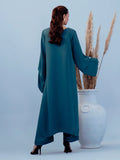 - Persian blue georgette loose fit straight shirt with baggy sleeves