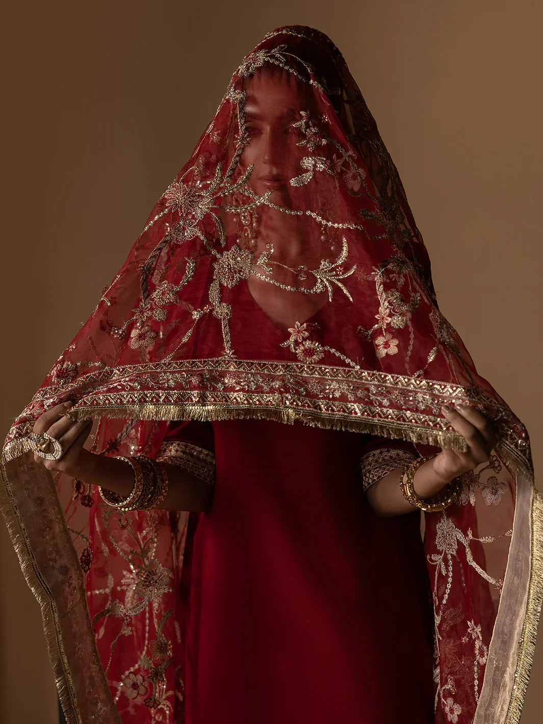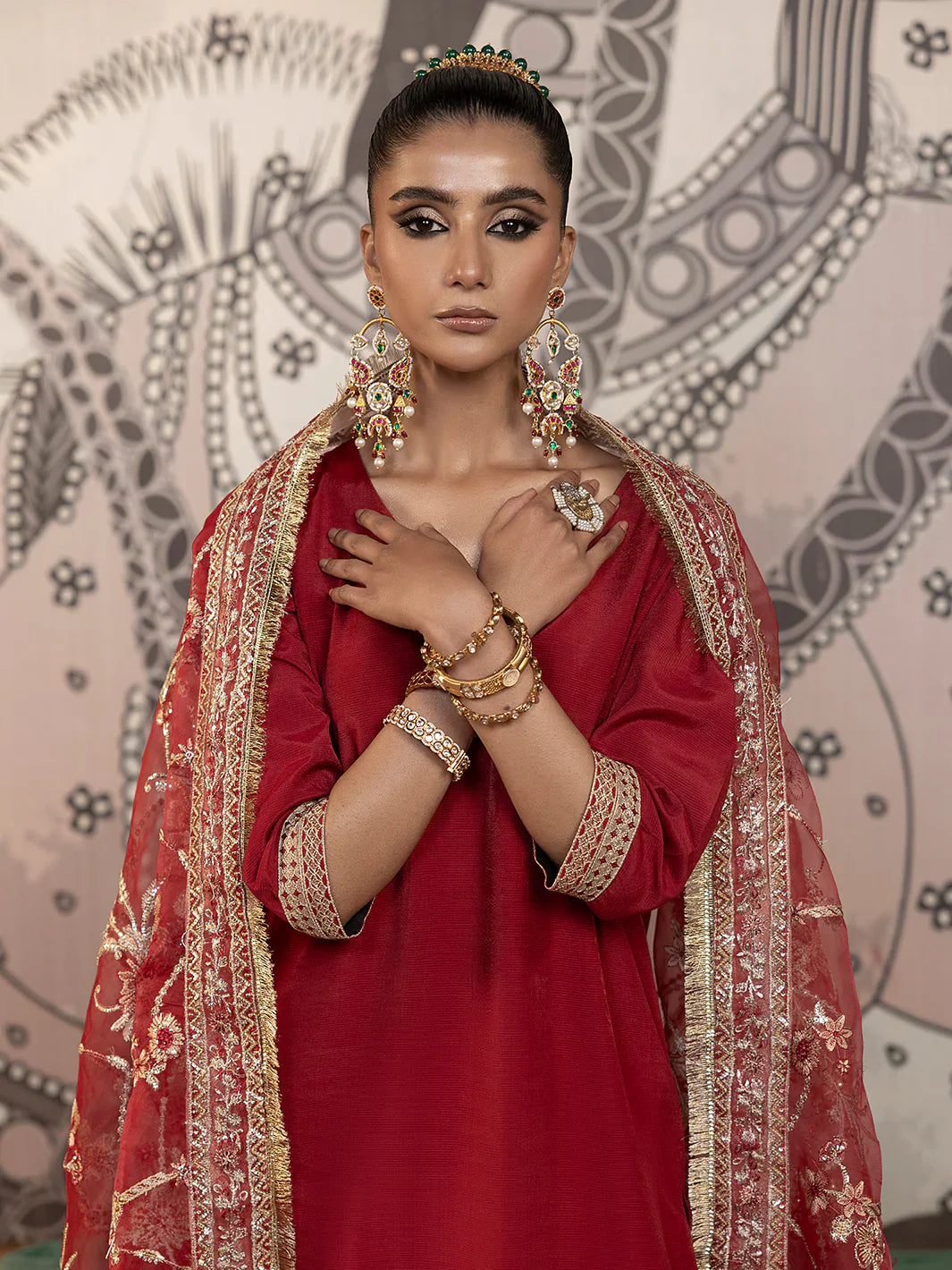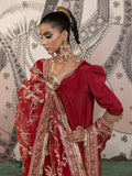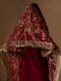 - Red organza embroidered dupatta with four side borders