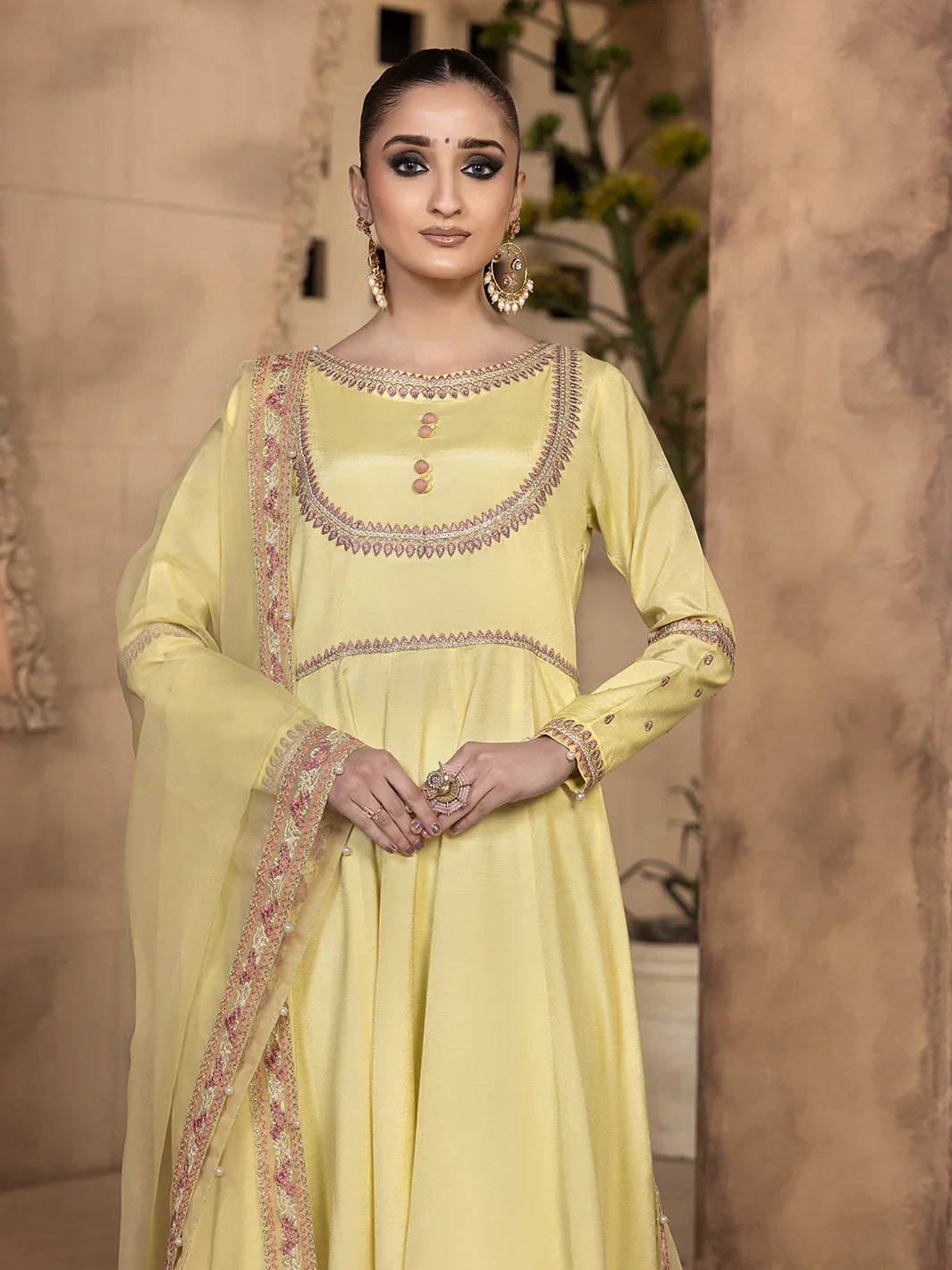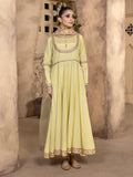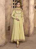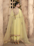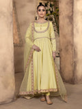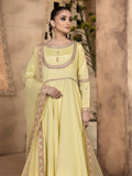 Lime Yellow raw silk anarkali style peshwaas with hanging gota tassels