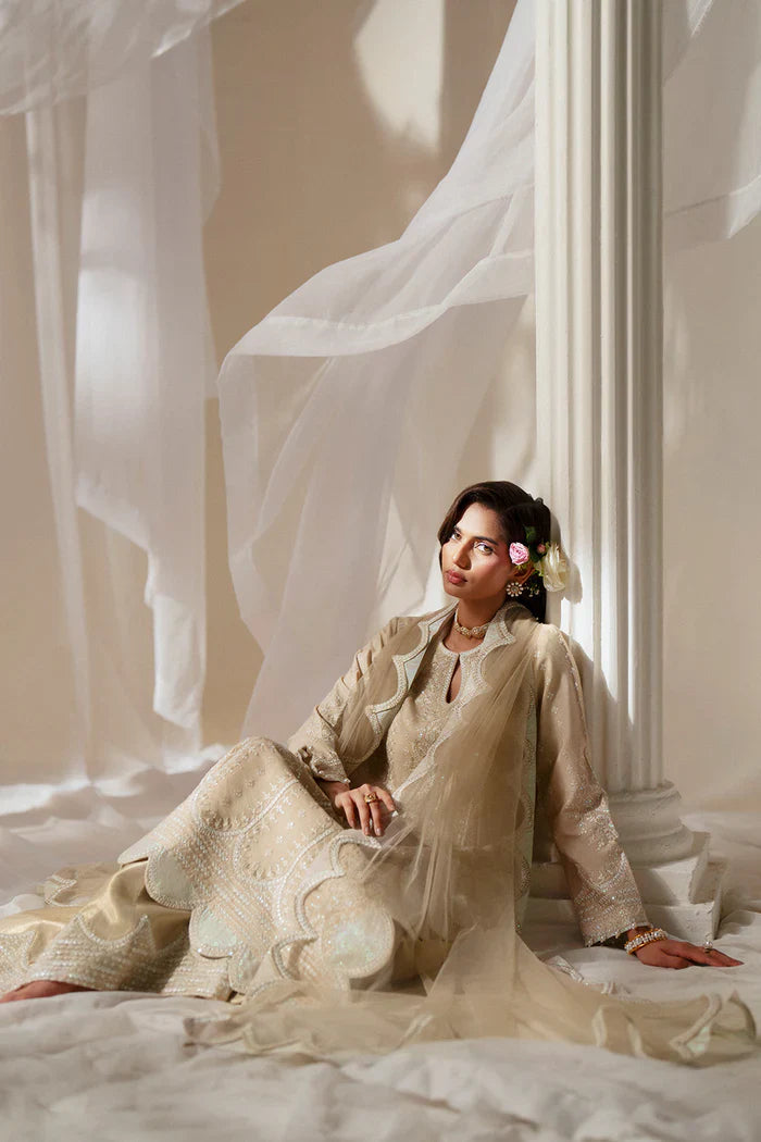 Extra fabrics, laces, embellishments, or potlis shown in product images are for presentation purposes only. These items are not included unless explicitly stated in the product description. The final Pakistani designer dress will feature the closest matching laces and embellishments.