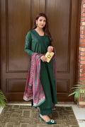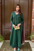 Bring a refreshing touch of elegance to your wardrobe with this stunning 3-piece pret in Rain Forest. The lawn shirt features a graceful V-neckline with button detailing, enhanced by delicate all-over embroidery spray for a refined charm. Its fitted sleeves with organza pleated details add a chic twist to the timeless silhouette. The flared cambric cotton trousers with embroidered borders create a graceful flow that completes the ensemble. A contrast silk printed dupatta adds a vibrant pop of color and artistic flair, making this outfit both versatile and eye-catching. Perfect for festive gatherings or daytime sophistication, this design blends modern finesse with classic artistry.