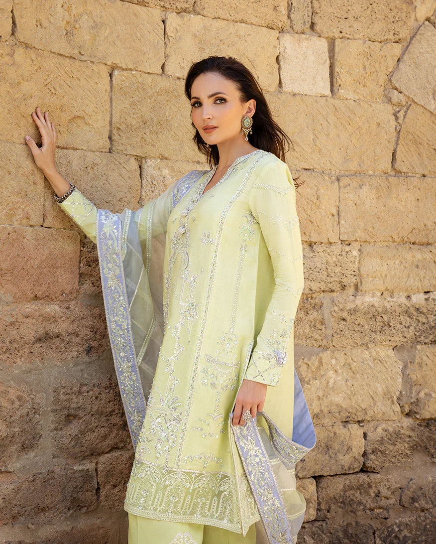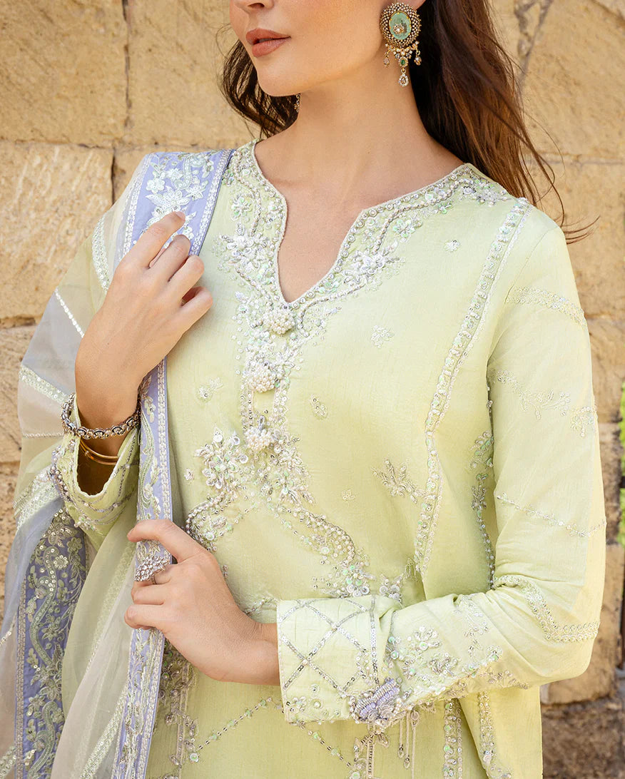 Extra fabrics, laces, embellishments, or potlis shown in product images are for presentation purposes only. These items are not included unless explicitly stated in the product description. The final Pakistani designer dress will feature the closest matching laces and embellishments.