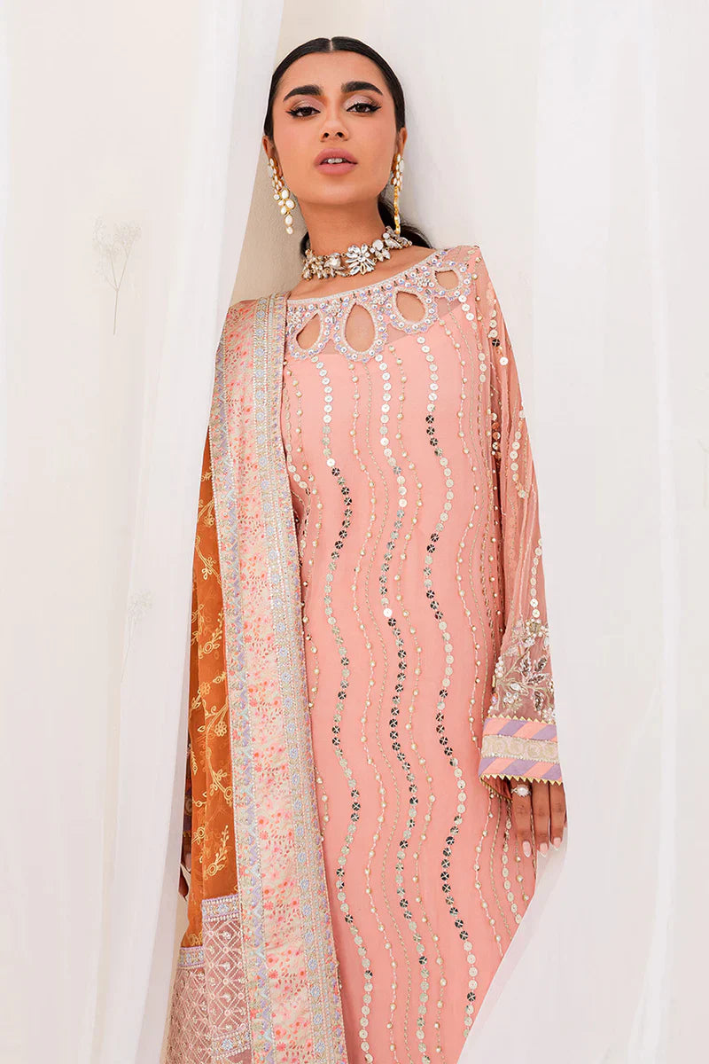 Extra fabrics, laces, embellishments, or potlis shown in product images are for presentation purposes only. These items are not included unless explicitly stated in the product description. The final Pakistani designer dress will feature the closest matching laces and embellishments.