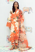 - 3-Piece RTW Printed Lawn Shirt Paired With Printed Organza Dupatta And Printed Cotton Trousers