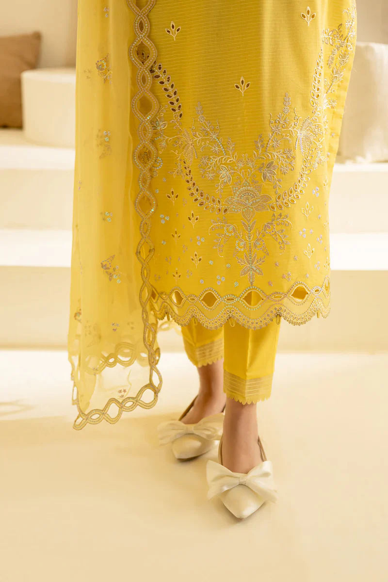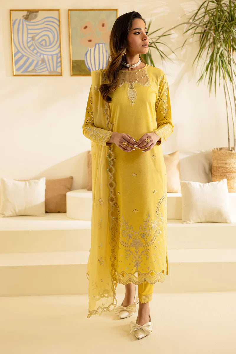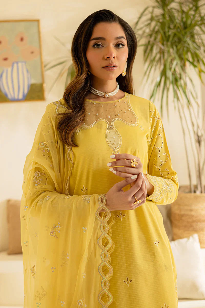 - Embroidered And Embellished Textured Lawn Shirt Paired With Embroidered Chiffon Dupatta And Dyed Cotton Trouser