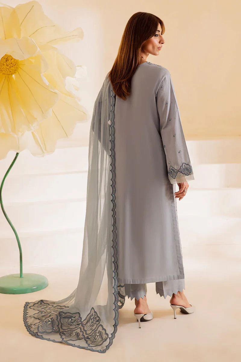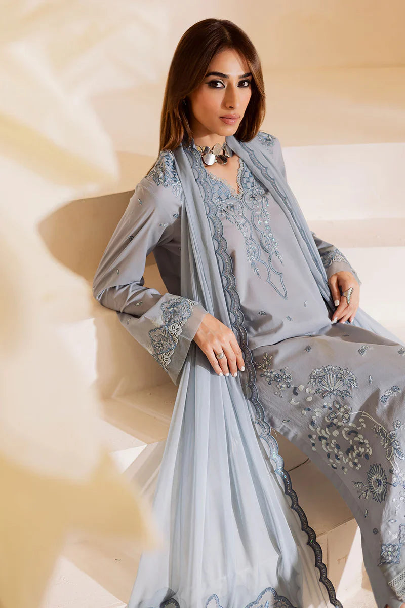 Embroidered Lawn Shirt Paired With Embroidered Chiffon Dupatta And Dyed Cotton Trouser