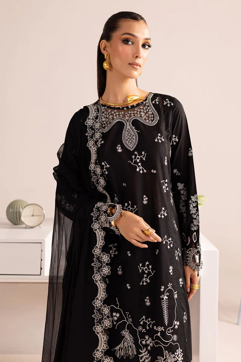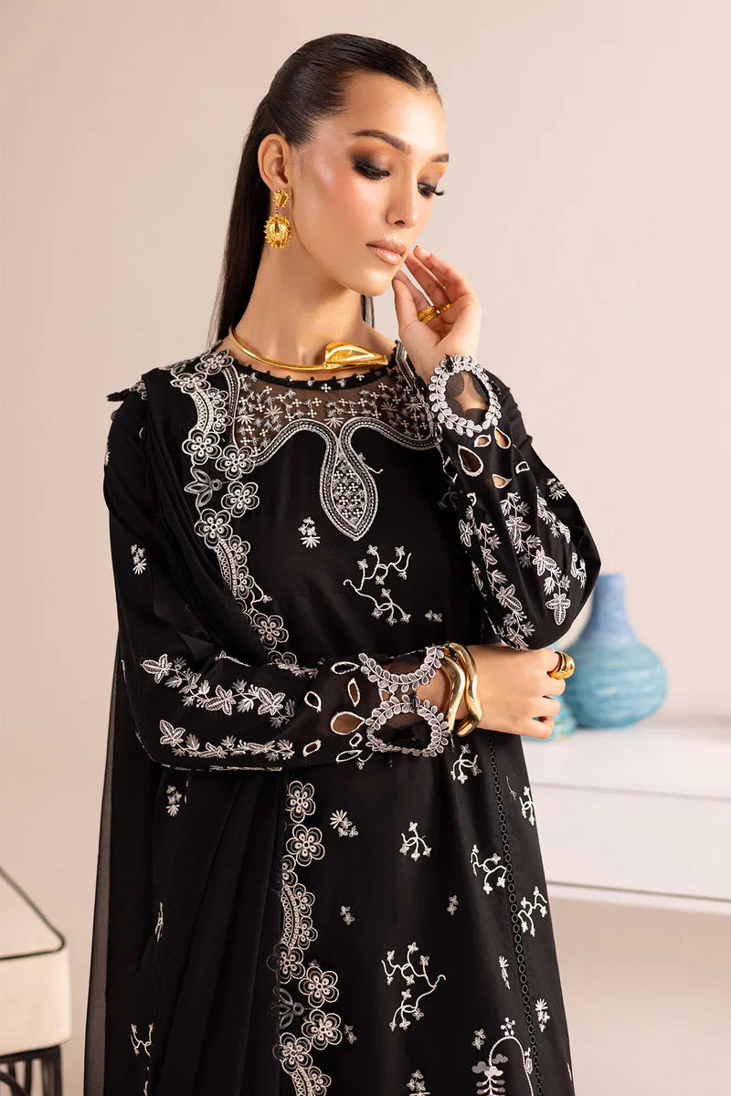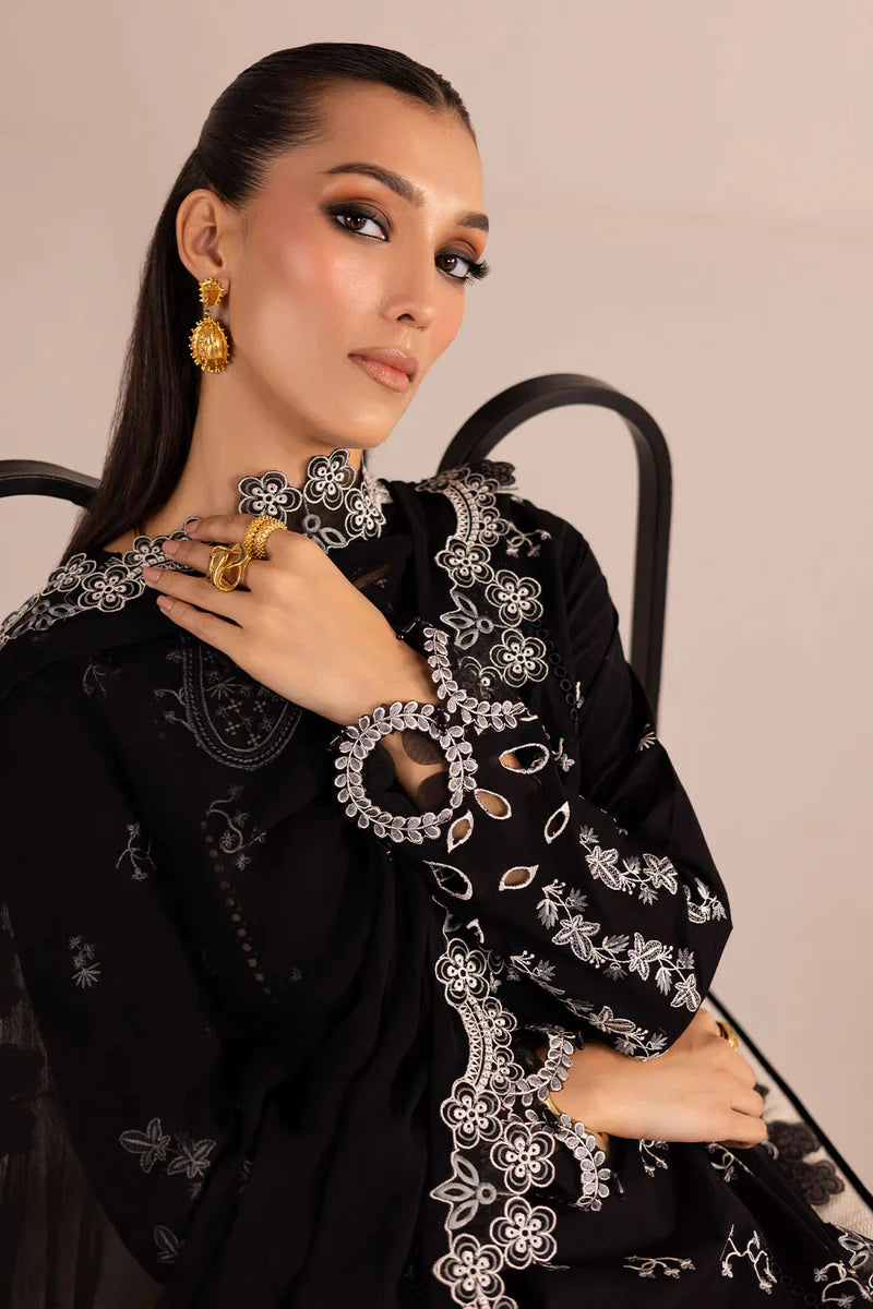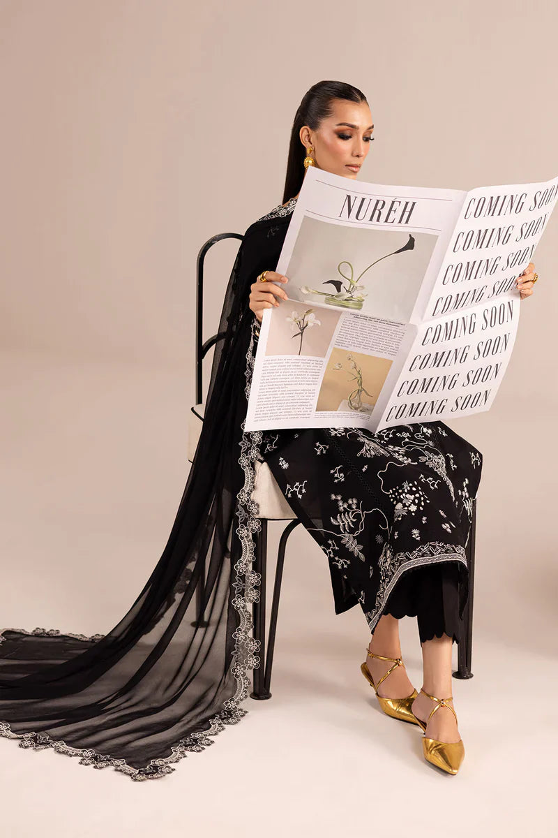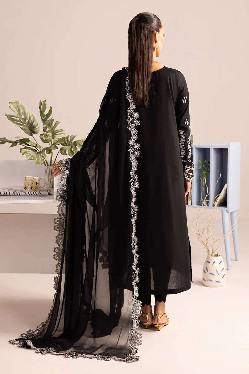 Embroidered Lawn Shirt Paired With Embroidered Chiffon Dupatta And Dyed Cotton Trouser
