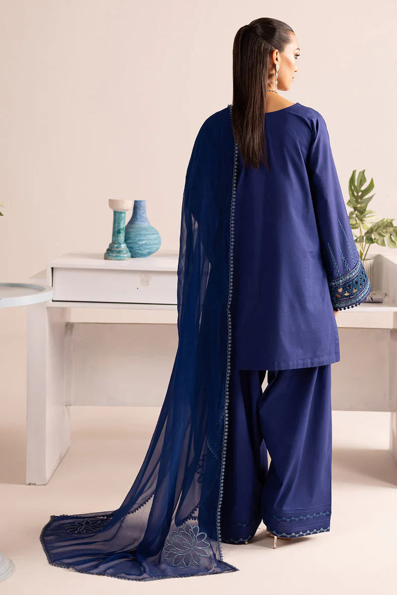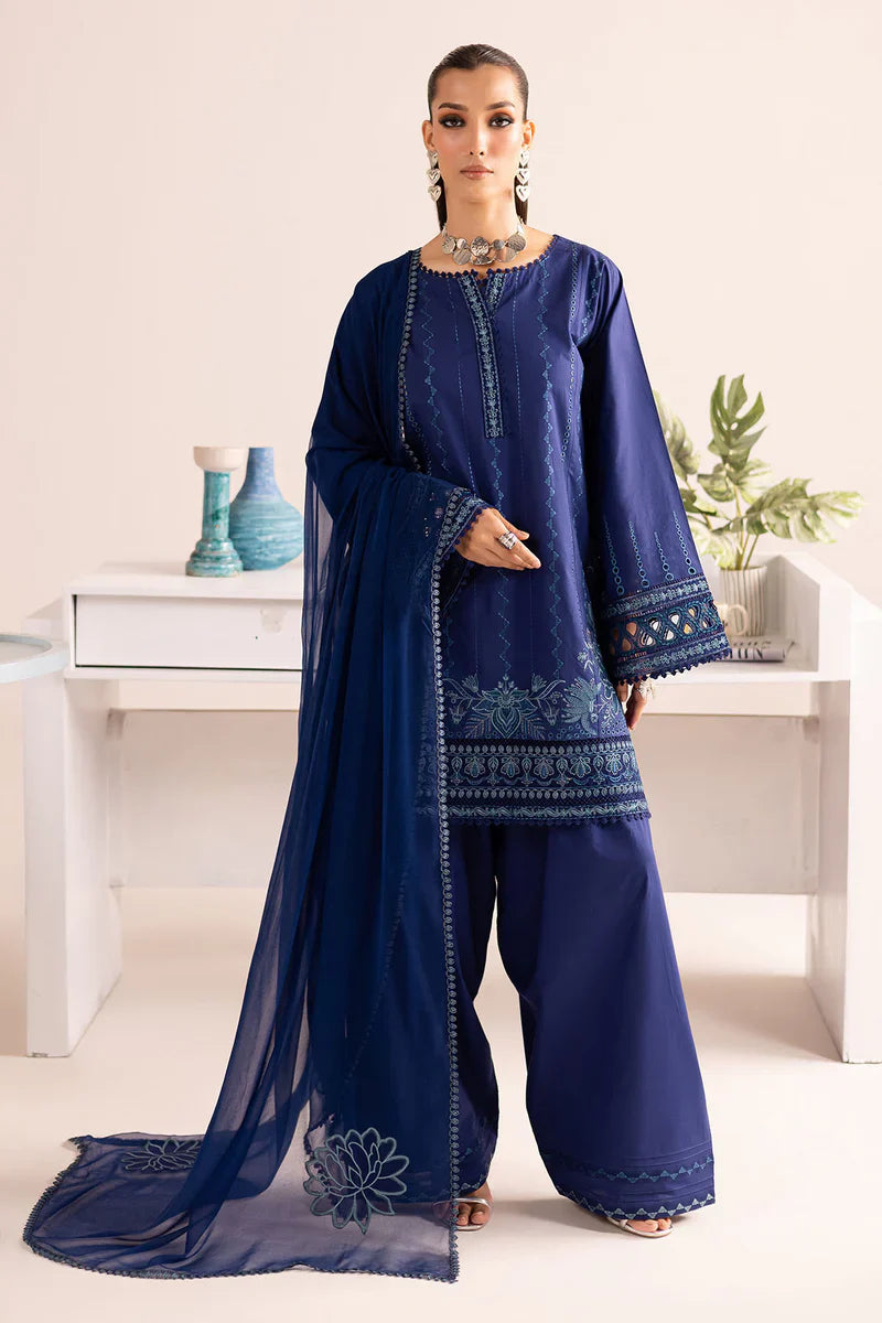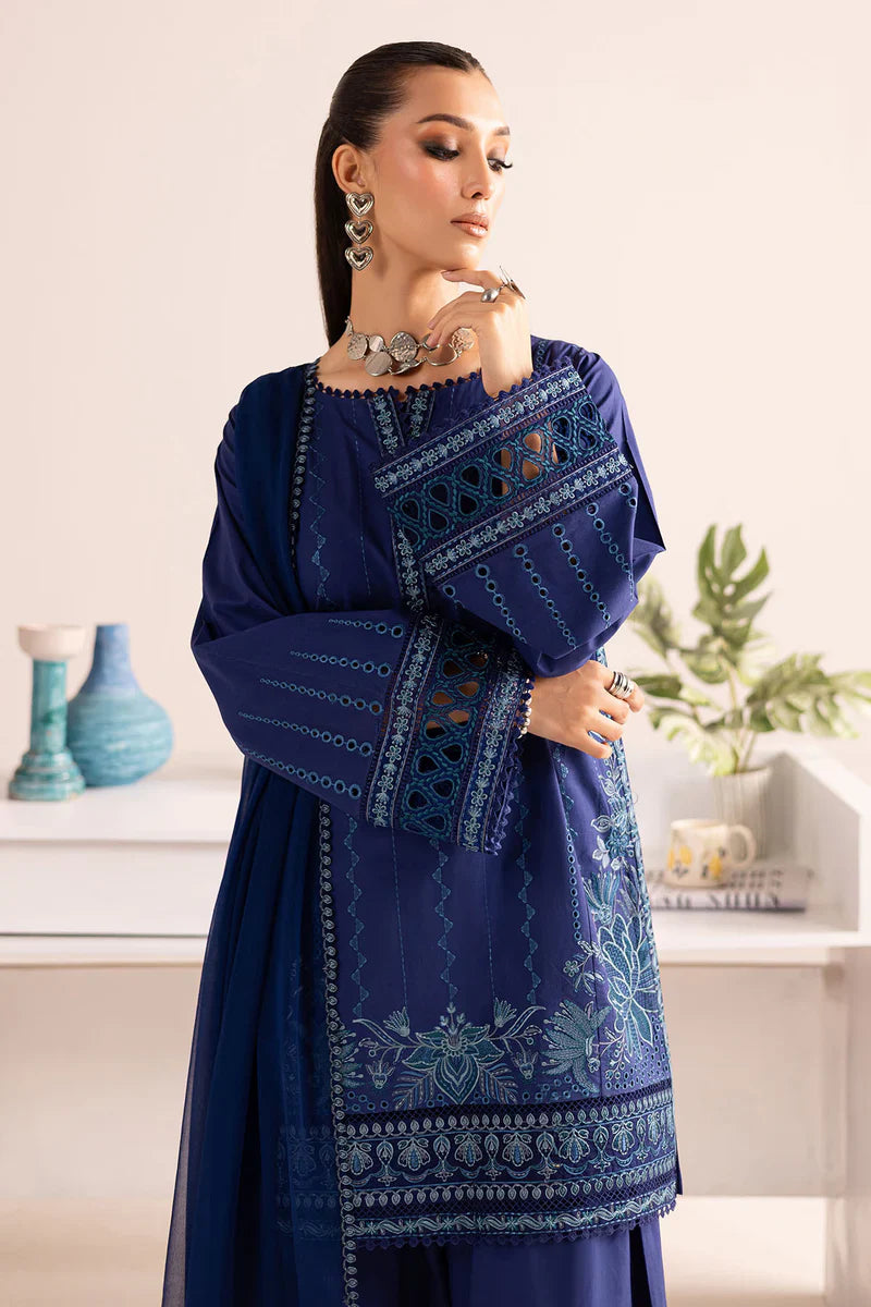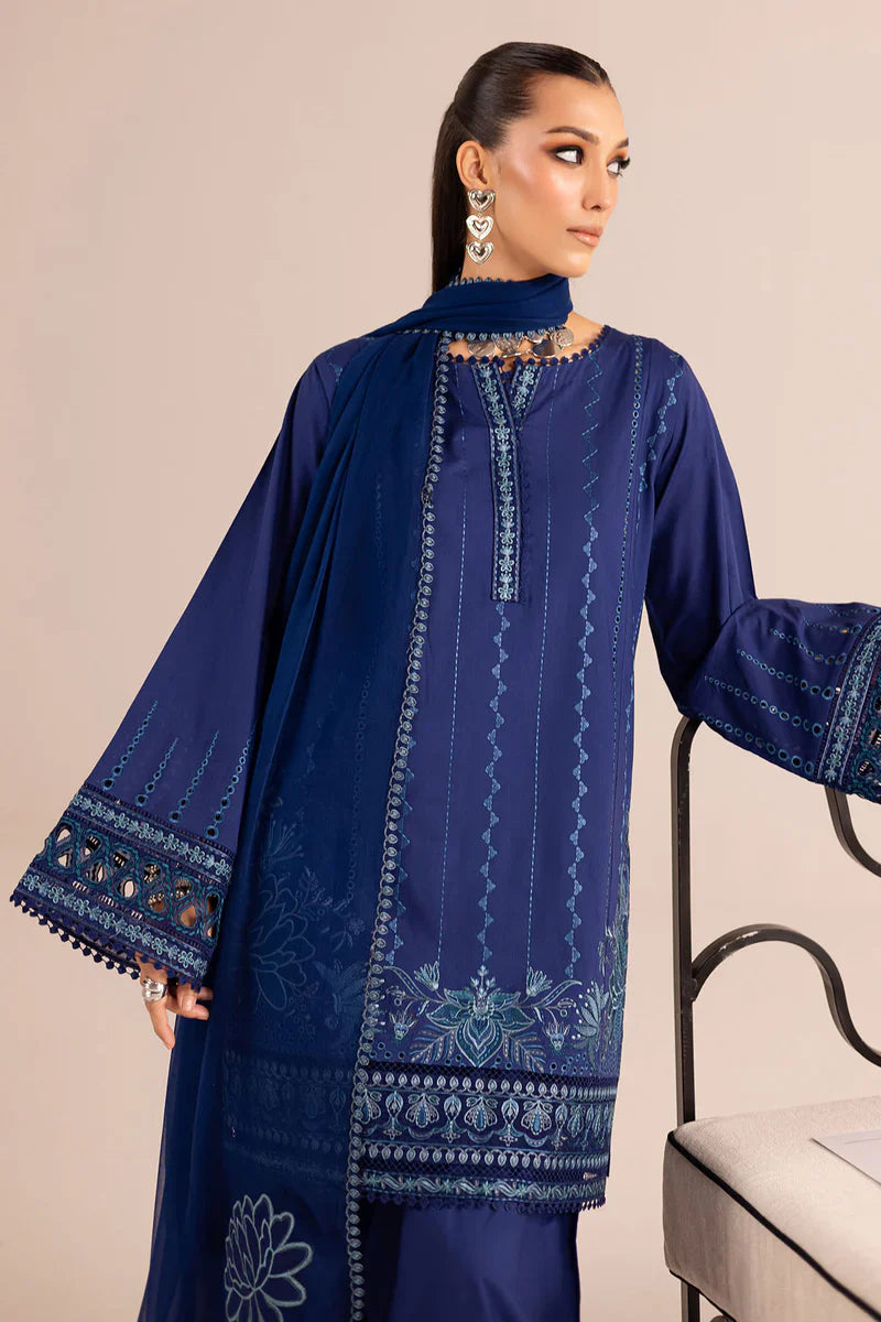 Embroidered Doriya Lawn Shirt Paired With Embroidered Chiffon Dupatta And Embroidered Farshi Shalwar