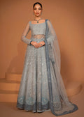 This exquisite pishwas features intricate embroidery cascading across the entire gown, blending tradition with contemporary charm. The outfit is elevated by a delicately embroidered net dupatta adorned with an all-over spray, adding subtle elegance. Paired with a flowing silk lehenga, this ensemble offers a perfect fusion of grace and grandeur. Designed for weddings and for special occasions, it promises to captivate with its regal silhouette and flawless craftsmanship.