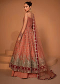 This masterpiece features intricate embroidery spread across the entire pishwas, reflecting refined craftsmanship. The embroidered net dupatta, embellished with a delicate all-over spray, adds a layer of grace and sophistication. Complementing the pishwas is a luxurious silk lehenga that enhances the ensemble’s grandeur. Designed for weddings and festive occasions, this outfit combines elegance and tradition, ensuring you stand out effortlessly with every step.