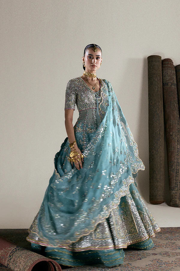 Extra fabrics, laces, embellishments, or potlis shown in product images are for presentation purposes only. These items are not included unless explicitly stated in the product description. The final Pakistani designer dress will feature the closest matching laces and embellishments.